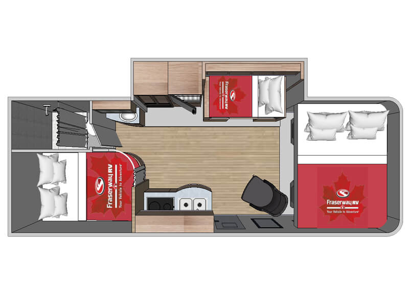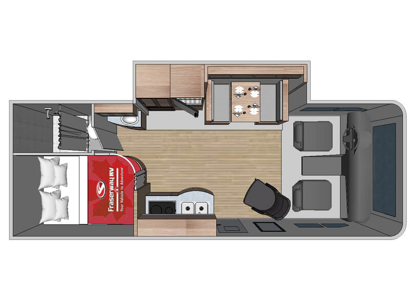 Das Motorhome C-Large – 25 Feet Slide-Out von Fraserway RV bietet großzügigen Raumkomfort für Reisende, die viel Platz und Ausstattung schätzen. Mit einer Länge von 25 Fuß und einem Slide-Out, der den Wohnbereich bei geparktem Fahrzeug erweitert, ist es ideal für bis zu vier Personen.